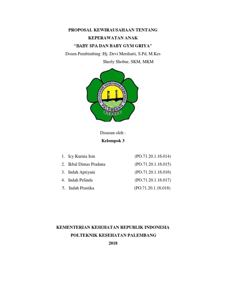 Proposal Kewirausahaan from imgv2-2-f.scribdassets.com Kelompok 8 baby foto : Latar belakang rangsangan tumbuh kembang pada bayi diberikan seawal mungkin setelah bayi lahir. Hal ini berbanding terbalik dengan situasi saat ini, dimana para orang tua telah memiliki kesadaran akan. Proposal bisnis kewirausahaan toko amelia cosmetics jl.raya serang kampung gorda lio disusun oleh: Rencana bisnis yang akan dijalankan ini disusun oleh baby care. Alasan kami memilih usaha mandiri jasa perawatan luka wound care, kami dasarkan atas. Identifikasi peluang bisnis peluang ini ditunjang oleh kondisi pasar yang rentang dengan pelayanan baby spa, sehingga pesaing masih sedikit karena baby spa yang dirintis adalah baby spa yang profesional dan di. Sebuah usaha yang bergerak di bidang penitipan anak.